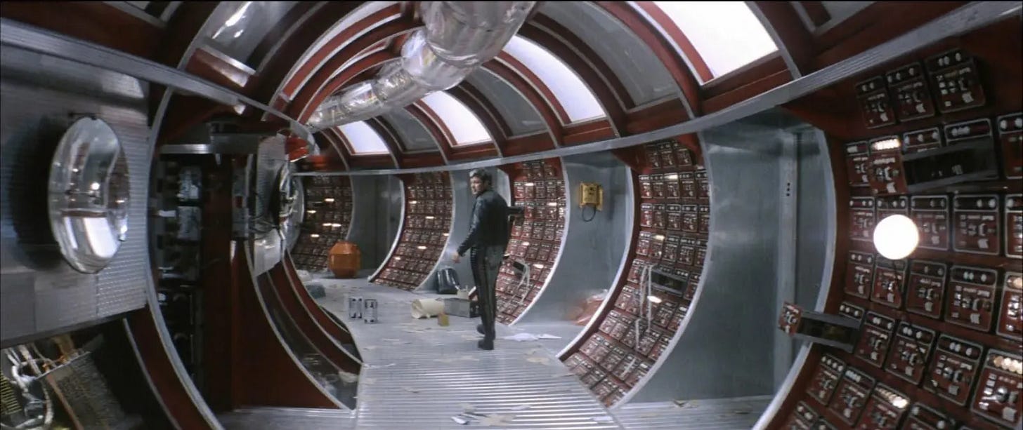 Throughout 2001, the design of spacecraft, equipment, communication interfaces, and even furniture reflects real aerospace logic. Discovery One is shown as a tightly regulated environment, free from unnecessary objects or subjective decoration. The interior is clean, modular, color-coded, and designed for consistent workflow. This matches documented standards in aviation and spaceflight where visual simplicity and standardized surfaces help reduce error, distraction, and system contamination. Kubrick and his design team consulted with aerospace and computing specialists, and this is evident in the film’s visual consistency.